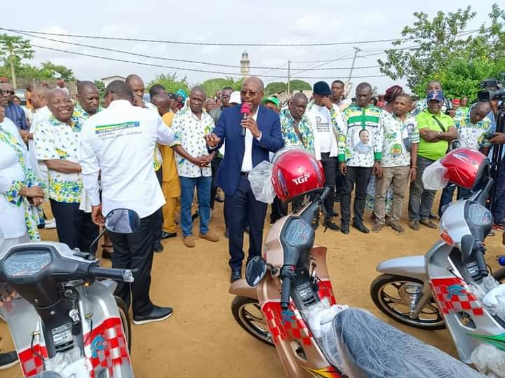En week-end dans son fief politique, le Vice-Premier Ministre Alain-Claude Bilie-By-Nze, également Membre du Comité Permanent du Bureau Politique du Parti Démocratique Gabonais, et Député élu, a offert un don important de motos aux structures de base du Parti de masses.