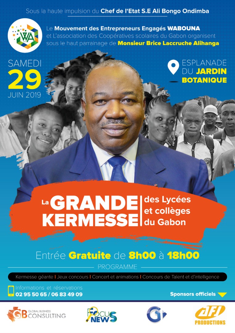 Dans le but de bien débuter la période des vacances, mais surtout pour permettre à la jeunesse gabonaise et particulièrement aux jeunes apprenants de pouvoir décompresser après près de neuf m+ois de cours, Ali Bongo Ondimba, le président de la République, chef de l’Etat, offre ce samedi 29 juin 2019, une grande kermesse des Lycées et Collèges, organisée par le mouvement des entrepreneurs engagés, Wabouna au Jardin Botanique de Libreville.