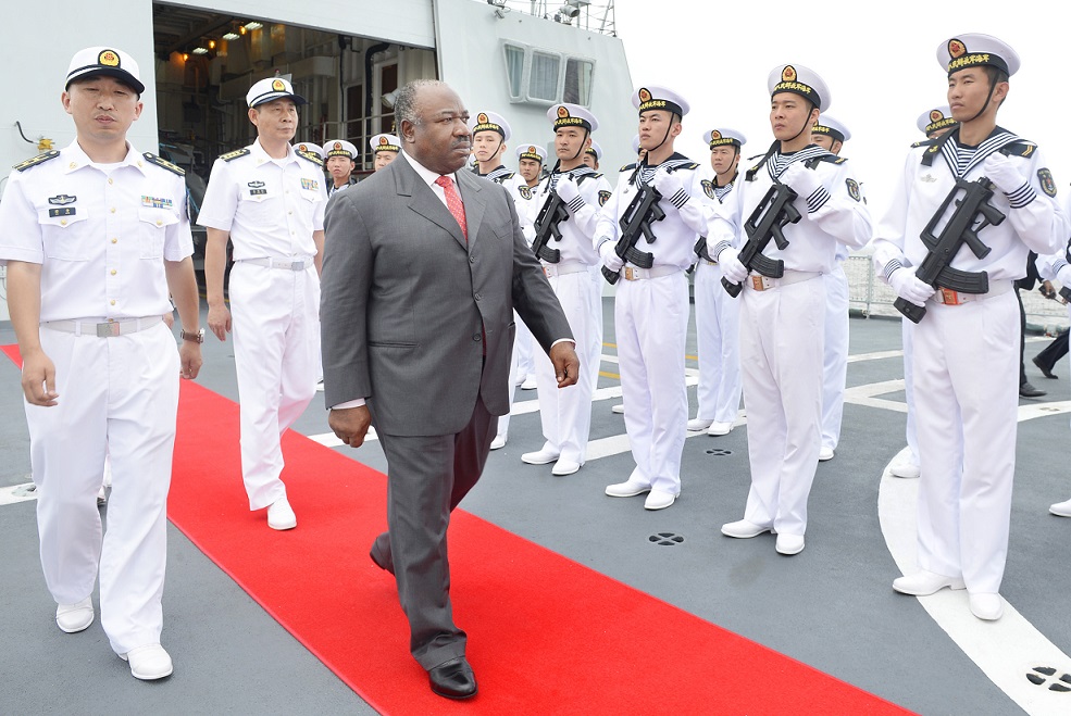 Le Président Ali Bongo Ondimba, a visité lundi au port d’Owendo la 28ème Flotte d’escorte de la marine chinoise, conduite par le Capitaine de vaisseau supérieur Wu Dongzhu et le Vice-amiral Guo Hongwei. Accompagné du ministre d’Etat gabonais en charge de la Défense nationale, du chef d’État-major général des Armées et du directeur général de l’Office des ports et rades du Gabon (OPRAG), le chef de l’Etat a, après les honneurs militaires, procédé à la visite de la frégate 546. L’entretien à bord de la frégate avec le Capitaine de vaisseau supérieur et le Vice-amiral a été l’occasion d’un tour d’horizon sur la coopération multisectorielle et la relation d’amitié entamée depuis plus de quatre décennies avec la Chine. Composée d’un bâtiment ravitailleur et de deux frégates, la 28ème Flotte d’escorte de la marine chinoise séjourne à Libreville depuis le 15 juin dernier, au terme d’une mission dans le Golfe d’Aden et au large des côtes de Somalie. La présence du Président de la République sur les lieux est un soutien à l’effort de promotion des échanges et de la coopération militaire entre les armées chinoise et gabonaise. Rappelons que le Président de la République avait déjà visité un autre navire chinois à Owendo en octobre dernier, « l’Arche de l’Alliance », un navire-hôpital, en escale d’une semaine dans notre pays. RAMA avec la presse présidentielle ]]>