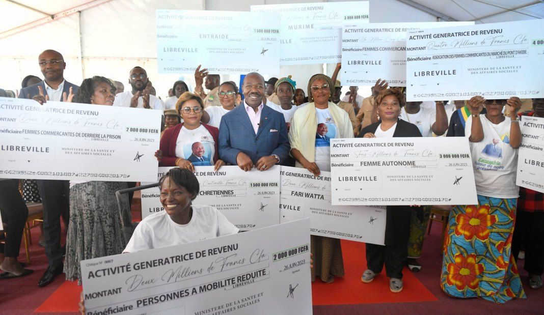 Accueil SOCIÉTÉAli Bongo Ondimba remet les premiers chèques du fonds d’aide aux AGR