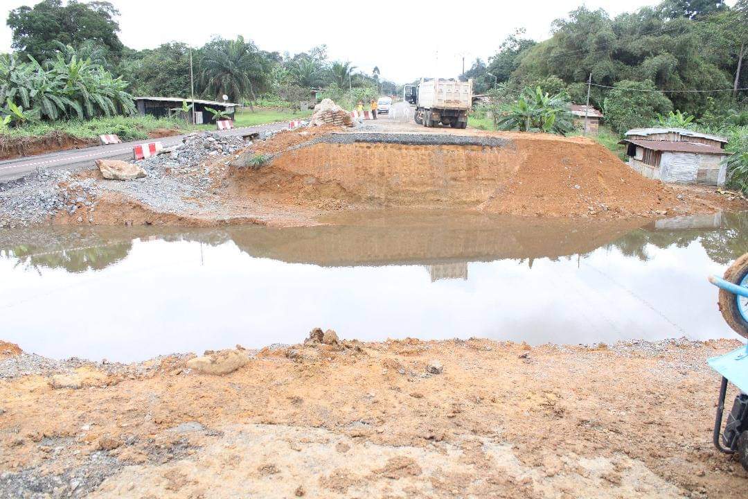 Occasionnant ainsi une retenue d’eau ayant emporté les ouvrages d’art provisoirement installés au niveau de la déviation.A ce qu’il semble, ces ouvrages ne fonctionnaient pas correctement pour évacuer l’importante quantité d’eau de pluie, ce qui a donc entraîné le débordement de la rivière et causé l’inondation des habitations situées dans le bassin, à proximité d’un ouvrage d’art en construction dans cette bourgade située à 20 Km de Kango.Étant donné l’importance de cette route pour l’économie du pays, des équipes ont été rapidement envoyées pour remédier à la situation, en installant un système hydraulique provisoire composé d’un dalot de deux mètres sur trois, afin d’augmenter le nombre d’ouvrages provisoires pour faciliter l’écoulement des eaux et rétablir la circulation.