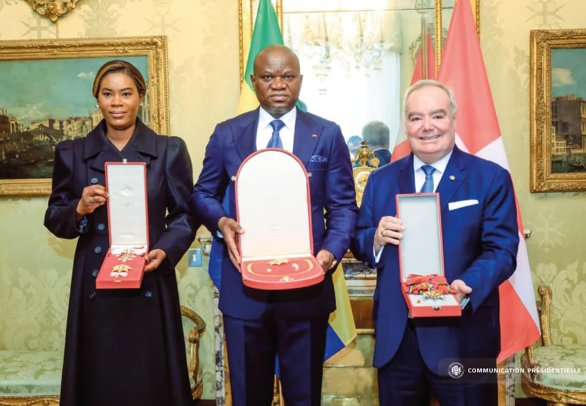 Cette décoration est exceptionnellement rare pour un Chef d’État en exercice, soulignant la signification particulière de cette reconnaissance.Au-delà de la cérémonie, la rencontre avec Son Altesse Éminentissime Fra’ John Dunlap, Souverain de l’Ordre, a abouti à des résultats concrets. Les deux personnalités ont procédé à la signature d’accords bilatéraux visant à une coopération renforcée, notamment dans des secteurs vitaux pour la population gabonaise, à savoir la santé publique et la formation médicale.Le Président de la République a tenu à marquer l’amitié et le respect du Gabon envers l’institution en honorant à son tour le Souverain de l’Ordre de la décoration de l’Ordre du Mérite Gabonais.