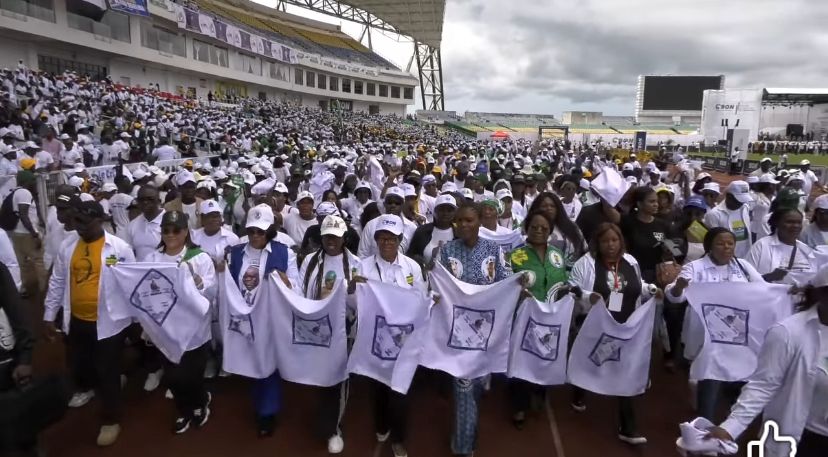 L’événement qui se tient actuellement dans une ambiance euphorique, les femmes vêtues de vêtements à l’effigie du candidat Oligui Nguema et arborant des couleurs vibrantes ont défilé dans le stade, scandant des slogans en soutien à ce dernier. L’entrée de Zita Oligui Nguema, qui a pris place au centre du stade, a été saluée par une ovation spontanée des milliers de personnes venues assister à cet instant historique.