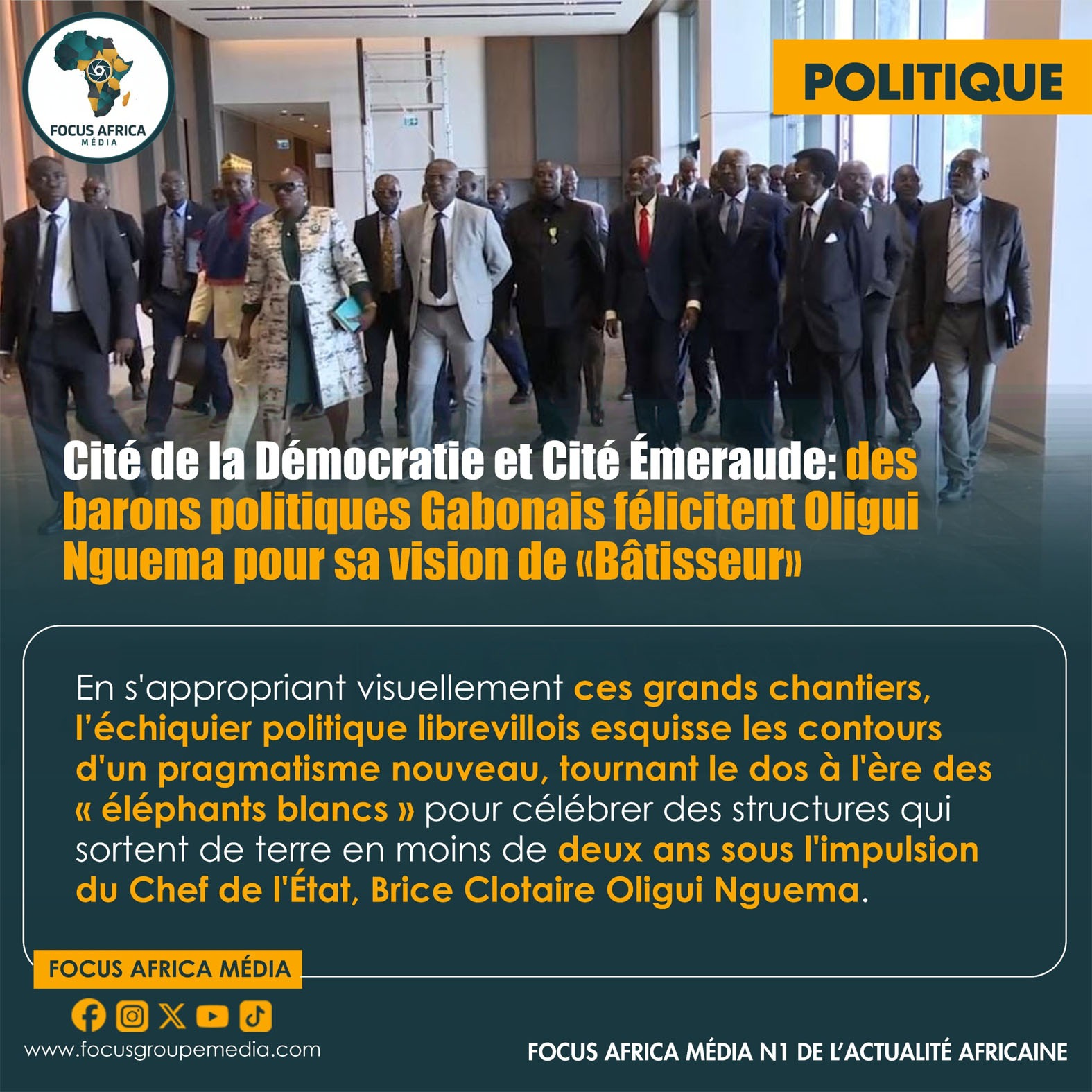 Accueil POLITIQUECité de la Démocratie et Cité Émeraude: des barons politiques Gabonais félicitent Oligui Nguema pour sa vision de «Bâtisseur»