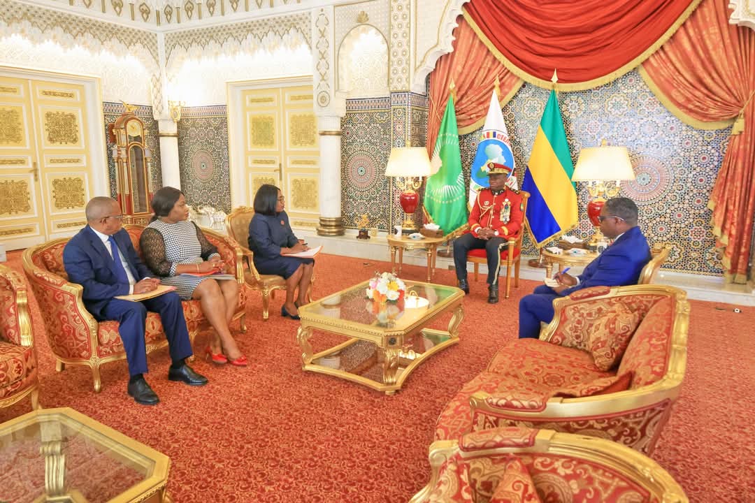 Le Président de la Transition, S.E. Brice Clotaire Oligui Nguema , a reçu ce 16 janvier 2025, la Ministre des Affaires Sociales, Mme Nadine Nathalie Awanang épouse Anato, accompagnée de la Directrice Générale de la CNAMGS.