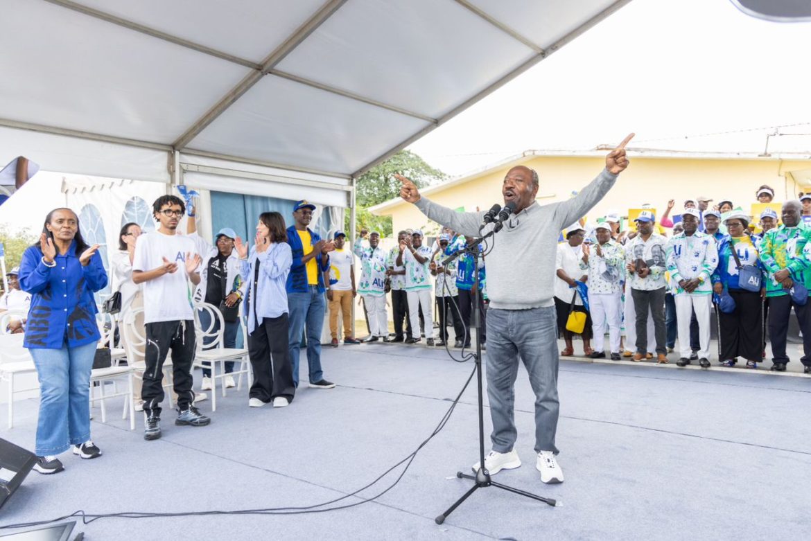 A midi, SE Ali Bongo Ondimba a pris la direction de Kango pour un meeting Place des fêtes où l’attendait une foule tout aussi nombreuse et enthousiaste qu’à Cocobeach. Durant cette journée, les échanges entre le Président de la République et la population ont tourné autour d’un des trois piliers de son Pacte Social et Républicain : la cohésion des territoires. « Le pacte de cohésion des territoires c’est également lutter contre les inégalités à l’intérieur de chaque province entre zones rurales et zones urbaines entre les quartiers populaires et les quartiers aisés. », a déclaré SE Ali Bongo Ondimba sous les applaudissements de la foule.