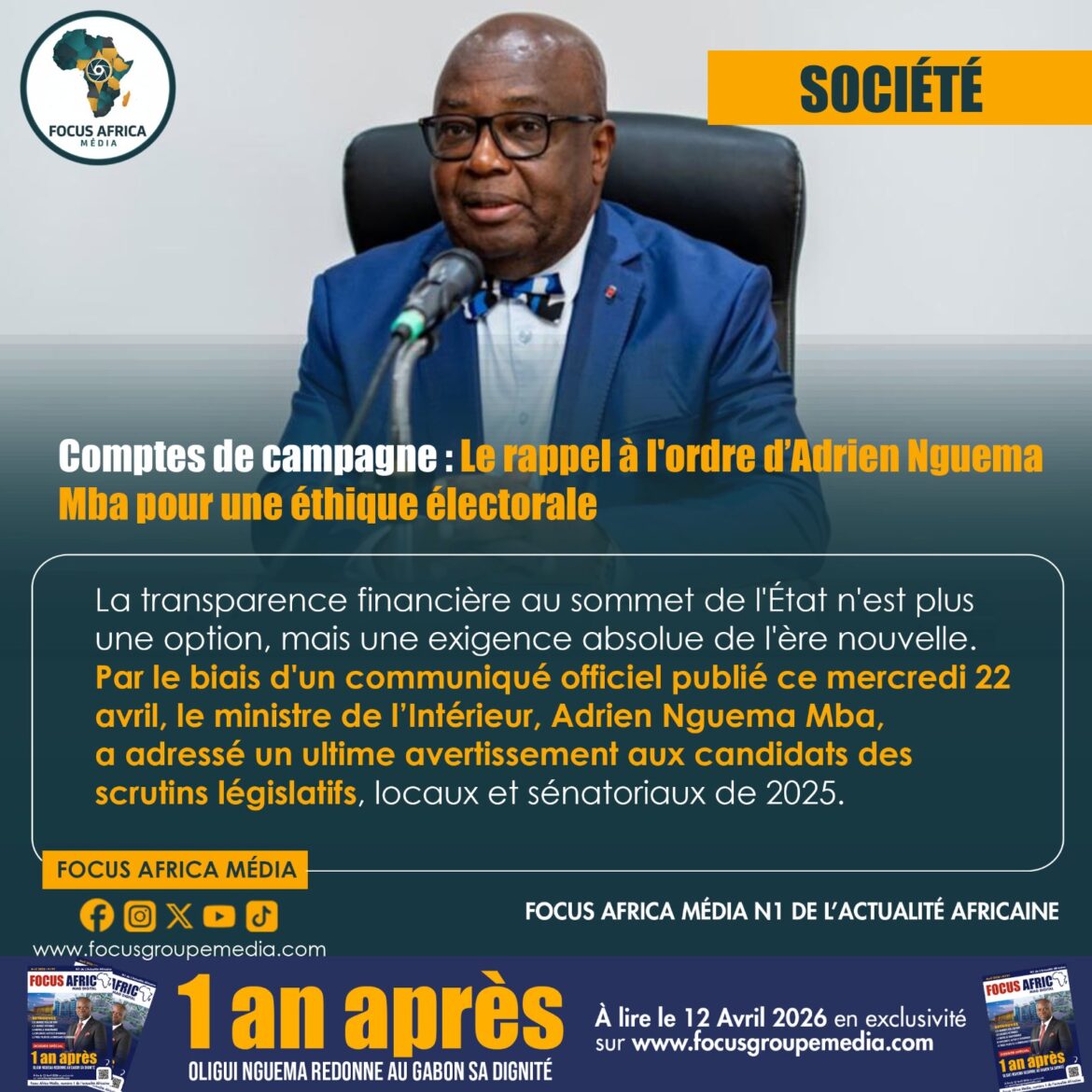 La transparence financière au sommet de l’État n’est plus une option, mais une exigence absolue de l’ère nouvelle. Par le biais d’un communiqué officiel publié ce mercredi 22 avril, le ministre de l’Intérieur, Adrien Nguema Mba, a adressé un ultime avertissement aux candidats des scrutins législatifs, locaux et sénatoriaux de 2025. Cette injonction, qui sonne comme un rappel à la discipline républicaine, exhorte les acteurs politiques encore en retard à déposer sans délai leurs comptes de campagne. À travers cette démarche, le gouvernement réaffirme que la légitimité des urnes doit impérativement s’accompagner d’une reddition de comptes rigoureuse devant les institutions compétentes.
