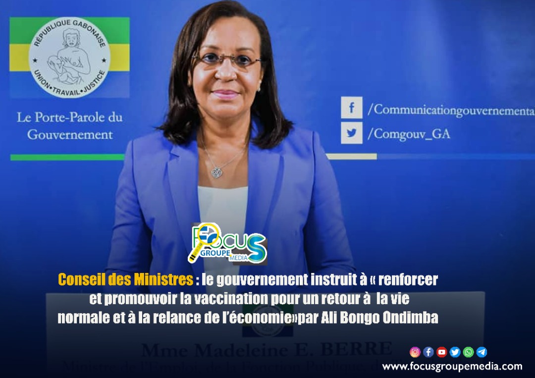 Le Conseil des ministres du lundi 3 janvier 2022 a permis au Président de la République, Ali Bongo Ondimba de réitérer son engagement à protéger la santé des Gabonais contre la pandémie à covid-19 qui frappe le monde entier. Un engagement qui a été formulé sous forme d’instruction et qui nous a été livré par le porte-parole du gouvernement, le ministre de la fonction publique, Madeleine Berre, dans sa lecture du communiqué final de cette grande messe gouvernementale : « Face à la quatrième vague de cette pandémie qui se caractérise par une augmentation exponentielle des cas de Covid-19 liés, notamment, à la présence du variant Omicron sur le territoire national, le Chef de l’État, a confirmé l’urgence attachée au maintien des mesures de prévention, de lutte et de riposte contre la Covid-19 en instruisant le gouvernement à renforcer et promouvoir la vaccination pour un retour à la vie normale et la relance de l’économie ».