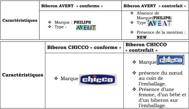 En effet, la DGCC a donné certaines indications devant permettre aux parents de détecter le vrai du faux. Entre autres, les biberons Avent conformes, sont de type « AVENT » avec la marque Philips, alors que les non conformes sont de type « AVEAT » avec une absence de la marque Philips et une présence de la mention « New ». D’autres part, si sur les biberons Chicco conformes, il y a un point rouge sur le « i », sur les contrefaits, il y a la présence du nœud au coin de l’emballage, ainsi que la présence d’une femme, un bébé et le biberon sur l’emballage.