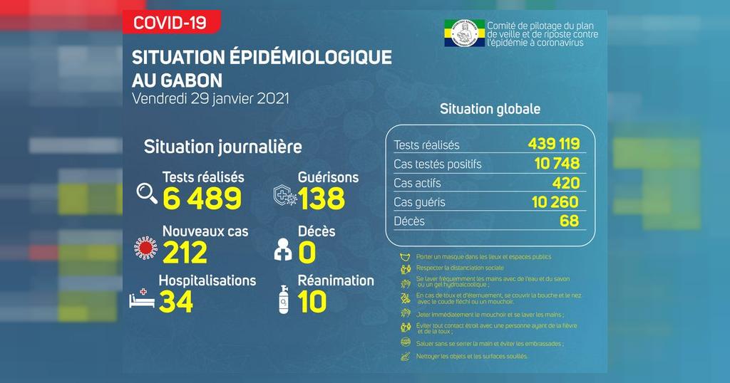 -Estuaire : 139 nouveaux cas positifs sur 6 076 prélèvements à Libreville, soit un total de 7 837 cas confirmés ;