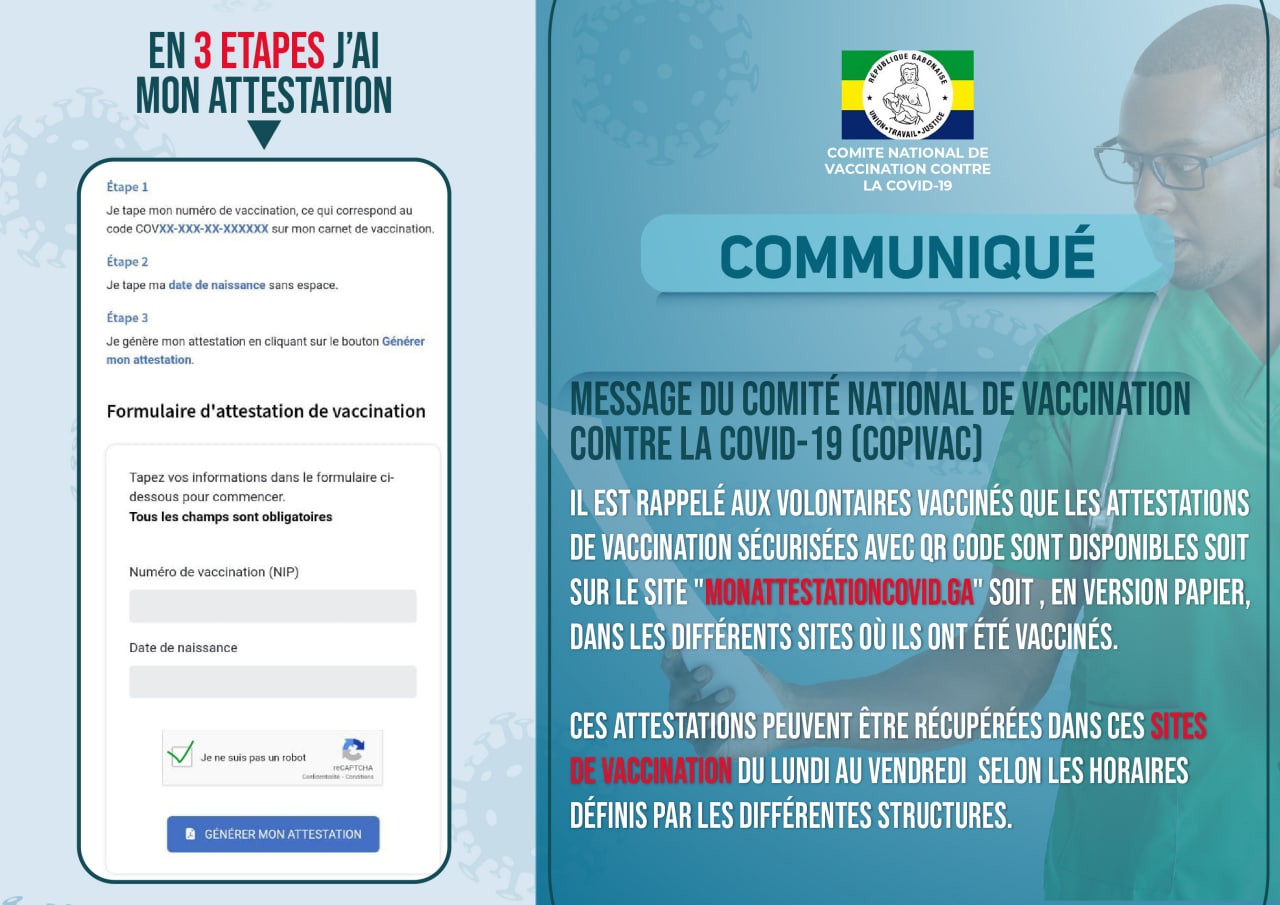 Disponibilité des *attestations de vaccination sécurisées avec QR code* en version papier dans vos sites de vaccination ou en version numérique sur le site internet