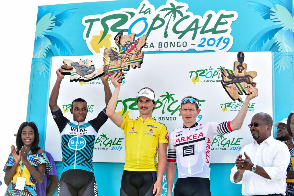 L’Italien Niccolo Bonifazio a remporté le classement final de la 14e édition de la Tropicale Amissa Bongo le 27 janvier 2019, après avoir gardé son maillot jaune de la première à la dernière étape. Le sprinter de l’équipe Direct Energie a décroché également trois étapes pour parfaire sa domination sur l’épreuve gabonaise. Pour sa première course avec sa nouvelle équipe, il tenait à briller et à prouver que Jean-René Bernaudeau ne s’est pas trompé en le recrutant. Les routes gabonaises lui ont même permis de faire mieux, en remportant la première course par étapes de sa carrière. «C’était important pour moi de gagner une course comme ici au Gabon, explique-t-il, car ça m’a demandé beaucoup de concentration et de régularité durant toute la semaine. C’est la première fois que je venais courir en Afrique, j’en garderai un grand souvenir.» Lorrenzo Manzin était aussi heureux aujourd’hui en remportant sa deuxième étape après celle obtenue à Oyem jeudi dernier. Le jeune français de l’équipe Vital Concept-B&B Hotels a réussi la performance de battre André Greipel. RAMA]]>