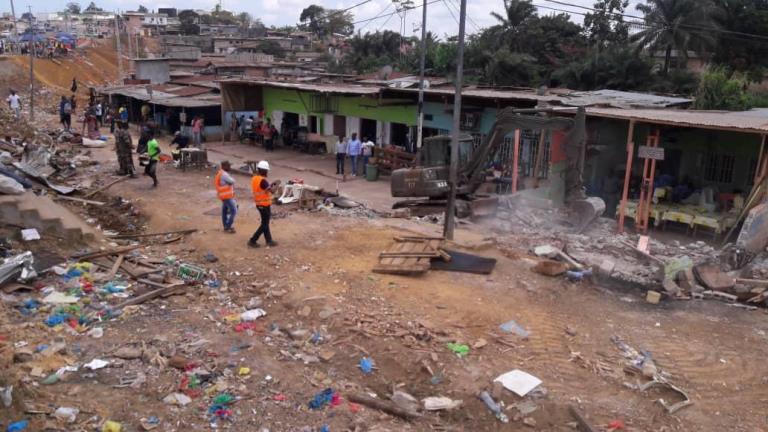 L’entreprise adjudicataire « Colas » chargée de l’aménagement du tronçon  PK5- PK12  menant sur la route nationale N°1 au sud de Libreville, a procédé samedi en matinée  à la destruction des bâtisses et autres commerces localisés sur l’emprise du domaine public, renseigne Gabonactu.com. L’opération vise l’élargissement de l’unique voie terrestre d’entrée et de sortie de Libreville où vivent plus de la moitié de la population gabonaise estimée à 1,800 million d’habitants. Il s’agit de mettre fin aux embouteillages monstres souvent enregistrées dans cette partie de la capitale gabonaise. « Certains riverains ont au fil du temps pris en otage l’espace public, et l’opération consiste donc à dégager ces derniers de l’espace public, mais aussi de rendre la ville plus attractive et belle », a confié un technicien de Colas à nos confrères de Gabonactu.com. L’opération se fait en étroite collaboration avec le génie militaire. Les personnes déguerpies étaient pour la plupart déjà dédommagées, selon certaines indiscrétions. Mais elles s’illustraient encore au dilatoire pour des raisons inavouées, rapporte notre source. BESSEY]]>