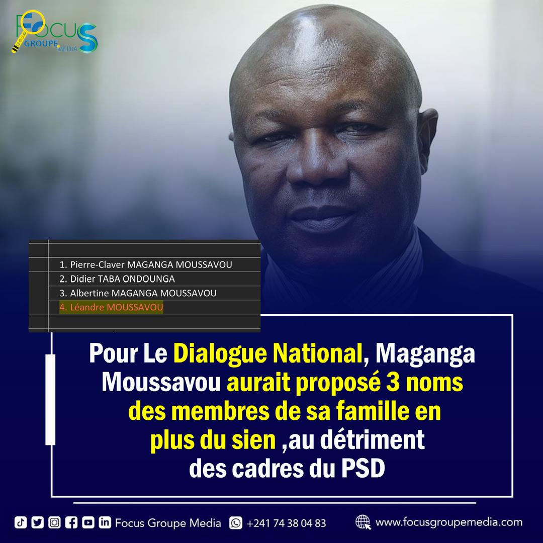 En effet, dans une récente sortie officielle, celui qui a été adjectivé d’ «Extraterrestre» par feu Omar Bongo Ondimba a indiqué que le Dialogue National inclusif sera un échec tout en appelant les leaders religieux à quasiment se retirer. Pierre Claver Maganga Moussavou, plus qu’il s’agit de lui, qui aurait été « trié » de cette grande messe nationale, n’a semble-t-il pas encore digéré cette future absence. Pourtant se présentant comme le défenseur des intérêts de la nation et du peuple, c’est lui qui aurait au détriment des cadres de son parti et non membres de sa famille, envoyés au comité d’organisation du Dialogue National inclusif 3 noms en plus du sien. Il s’agirait notamment de : Pierre Claver Maganga Moussavou, Didier Taba Ondounga , Albertine Maganga Moussavou et Léandre Moussavou.