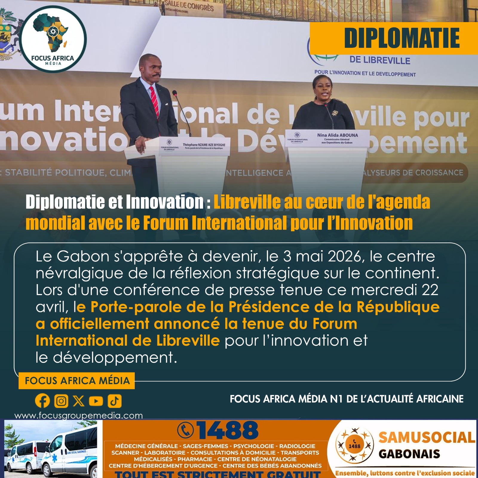 Le Gabon s’apprête à devenir, le 3 mai 2026, le centre névralgique de la réflexion stratégique sur le continent. Lors d’une conférence de presse tenue ce mercredi 22 avril, le Porte-parole de la Présidence de la République a officiellement annoncé la tenue du Forum International de Libreville pour l’innovation et le développement. Ce rendez-vous de haut niveau, qui se déroulera dans l’écrin prestigieux du Palais des Congrès de la Cité de la Démocratie fraîchement réhabilité, marque une étape décisive dans la volonté des plus hautes autorités de repositionner le pays comme une terre d’opportunités et de dialogue.