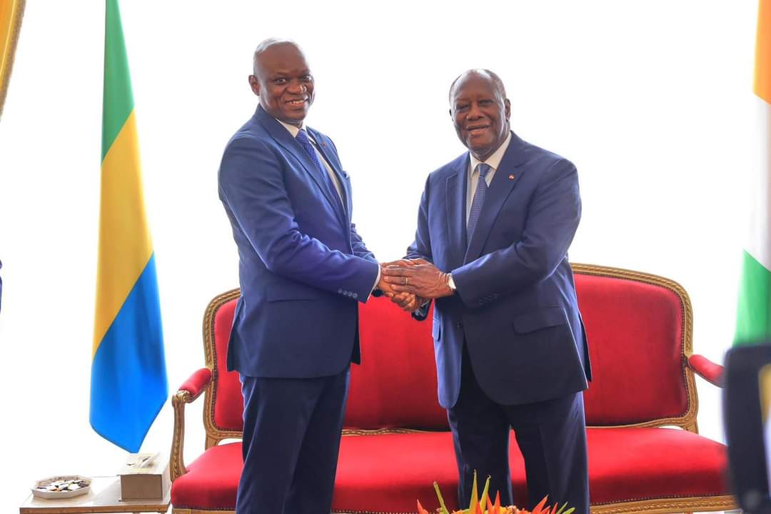Le Président de la Côte d’Ivoire Alassane Ouattara a reçu au palais présidentiel d’Abidjan ce Jeudi 11 avril 2024 le Chef d’État gabonais Brice Clotaire Oligui Nguema. En effet, le Président de la Transition, Président de la République, est en visite officielle en terre des éléphants où il a reçu un accueil chaleureux de la part des autorités ivoiriennes. En tête à tête, les deux Chefs d’État ont passé en revue les relations bilatérales entre les deux pays.