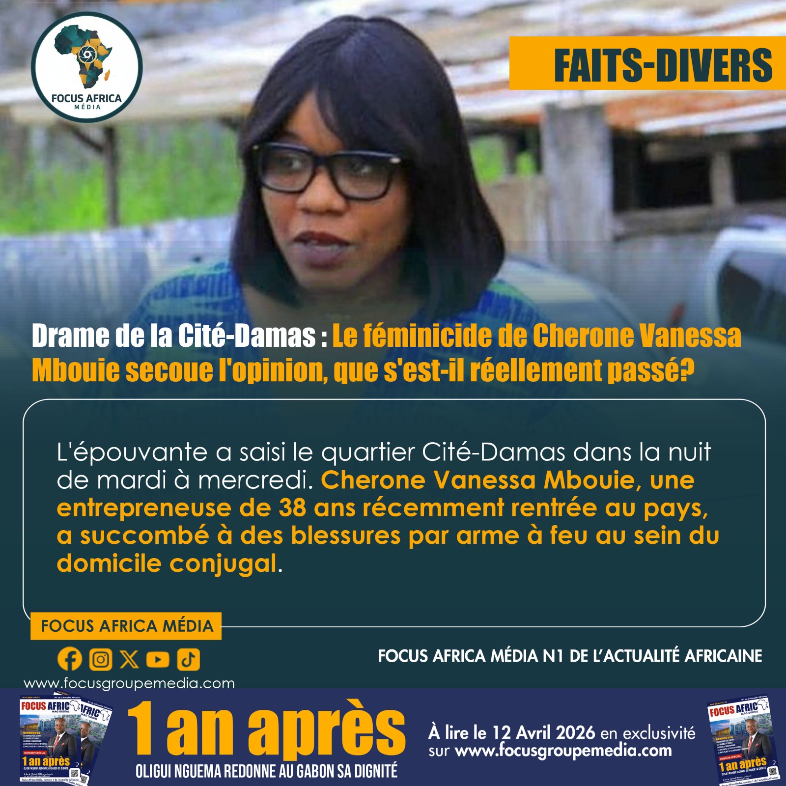 Ce drame est d’autant plus poignant que Cherone Vanessa Mbouie incarnait l’espoir d’un renouveau. Après sept années d’entrepreneuriat au Maroc, elle était revenue au Gabon pour rebâtir sa vie et venait de s’insérer professionnellement dans une entreprise à Owendo. Son destin, brisé en plein élan, laisse aujourd’hui place à une instruction judiciaire très attendue. Les auditions menées par la Police Judiciaire (PJ) devront déterminer avec exactitude les circonstances du tir et la responsabilité de cet agent de l’État, fils d’un ancien diplomate, dans la mort d’une femme qui ne demandait qu’à vivre sa liberté.