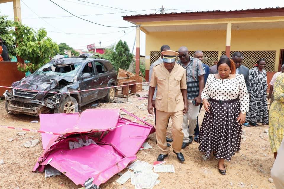 La ministre d’État à l’Éducation nationale, Camélia Ntoutoume Leclercq, s’est déplacée à l’École Publique de la Cité MEBIAME, où un accident s’est produit jeudi 15 mai, suscitant une grande émotion parmi la communauté scolaire.