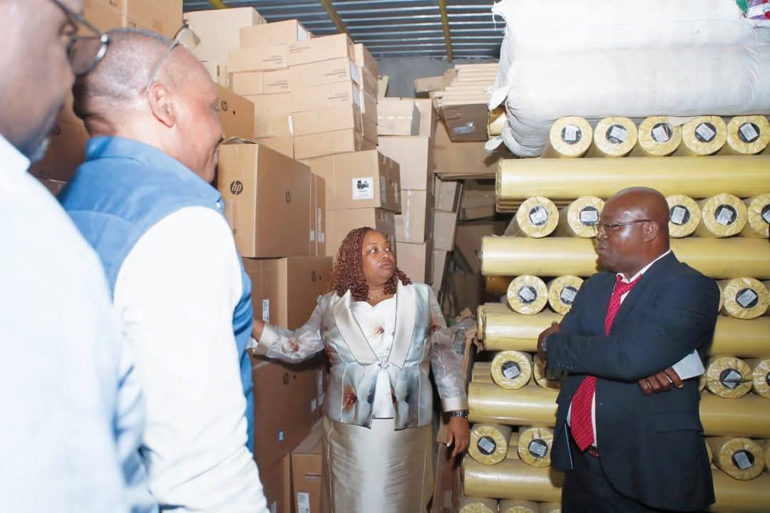Dans le cadre du renforcement des infrastructures pédagogiques, la Ministre de l’Éducation nationale, Camélia Ntoutoume Leclercq a effectué vendredi dernier une visite de l’entrepôt central chargé de stocker les équipements destinés à l’École Normale Supérieure (ENS) et à l’École Normale Supérieure de l’Enseignement Technique (ENSET).