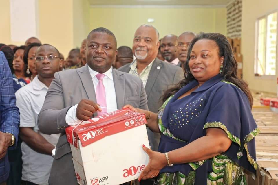«Appliquant les très hautes instructions du Président de la Transition, Chef de l’État, le Général de Brigade Brice Clotaire OLIGUI NGUEMA, j’ai procédé, ce jeudi 04 Avril, à la remise de 804 ordinateurs, des consommables dont 8.400 rames de papiers, à l’ensemble des établissements de la province de l’Estuaire pour un meilleur fonctionnement», a indiqué Camélia Ntoutoume-Leclerq.