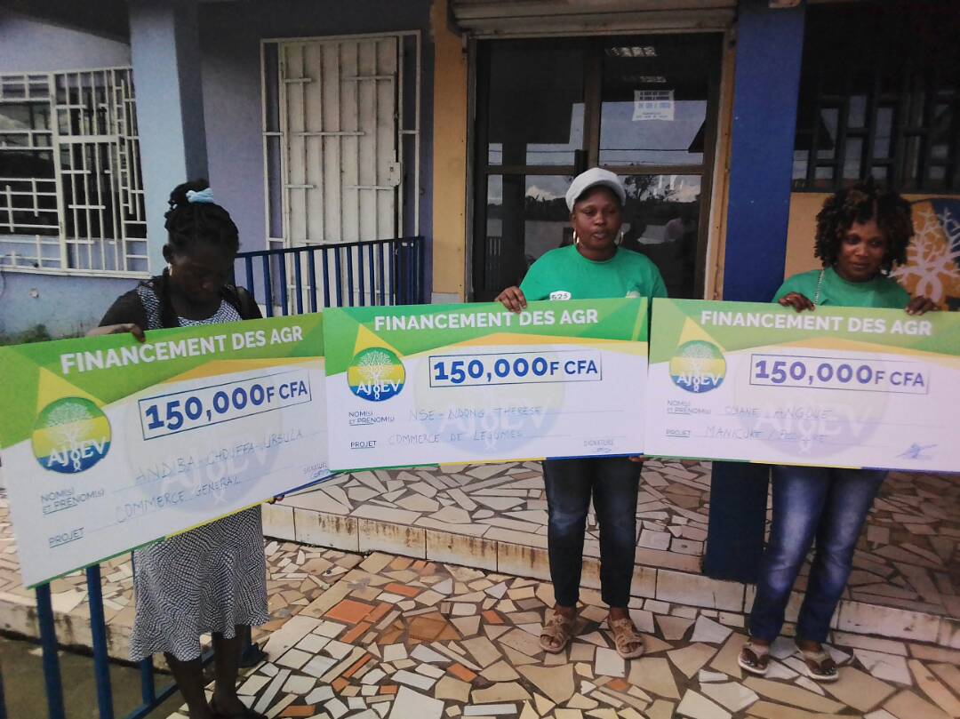 La Plateforme AJEV a délivré ce 14 mai 2018, les premiers chèques, en vue du financement des activités génératrices de revenus (AGR) en faveur des femmes commerçantes. Les bénéficiaires, Adeline Andougamo, Ursula Andiba Chouffa, Oyane Angone et Therese Nze Ndong, engagées dans l’entrepreneuriat commercial et les services de beauté, ont reçu un véritable pain béni en cette période de conjoncture économique drastique, de la part des responsables de la plateforme AJEV.   « Il s’agit de leur permettre de renforcer leurs activités commerciales, conformément à la vision de l’AJEV et du gouvernement qui prônent l’autonomisation des couches sociales les plus défavorisées », a expliqué Hercule Nze Souala, Responsable Communication de la plateforme AJEV. « L’appui financier que nous avons reçu ce matin nous permettra de redynamiser nos activités, et c’est un soutien qui tombe à pic en cette période de crise économique », a dit Adeline Andougamo, s’exprimant au nom des bénéficiaires Les femmes commerçantes ont salué l’initiative de la plateforme AJEV et ont invité celles qui hésitent encore à rejoindre cette structure associative, qui prône et encourage l’autonomisation des couches sociales les plus vulnérables.]]>