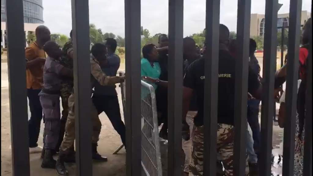 Les agents de Gabon-Télévision et Radio-Gabon ont été brutalisés par les forces de l’ordre ce vendredi, alors que ces derniers tentaient de se rendre dans leur lieu de travail. En voulant rallier leurs bureaux ce vendredi, les journalistes et les personnels de Gabon Télévision et de Radio Gabon, en grève depuis 48 heures, ont été interdits d’accéder à la Maison Georges Rawiri par  les forces de l’ordre. La situation a vite dégénéré.  Molestation à coups de matraque, lynchage, et pulvérisation par gaz lacrymogène, les agents ont subi un traitement d’une forte violence. Conséquences, certains journalistes ont été blessés, dont les plus graves conduits dans une structure hospitalière de Libreville, afin de recevoir des soins. « C’est le fait de l’hyper activisme de la Police qui a voulu a sa manière régler la question de la grève lancée par le SYPROCOM à la Maison Georges Rawiri. Les Policiers se sont improvisés ce vendredi matin à la guérite avec l’idée de filtrer les entrées, alors qu’il y a une permanence de la Gendarmerie. S’en sont suivis des échanges de mots durs avec les grévistes, notamment les leaders syndicaux, qui ont mal apprécié la présence des policiers comme une énième provocation des flics. Des lacrymogènes ont été utilisés face au refus des journalistes de se laisser faire et certains ont été sérieusement touchés par les émanations toxiques et conduits vers des centres de santé par des collègues »,explique un des journalistes présents sur les lieux. Ce mouvement d’humeur des agents de la communication a été déclenché mercredi matin, bouleversant ainsi le bon fonctionnement des programmes télévisés et radio. Faut le rappeler, les agents réclament une meilleure organisation et la précision des attributions des conseils d’administration et des directions générales, la mise en place d’une grille salariale et la détermination du statut des personnels, ainsi que  le paiement de la prime de rendement et le reversement de la redevance audiovisuelle, entre autres. Maintenant le calme est revenu, la police a quitté les lieux. Marielle Ilambouandzi/RAMA  ]]>
