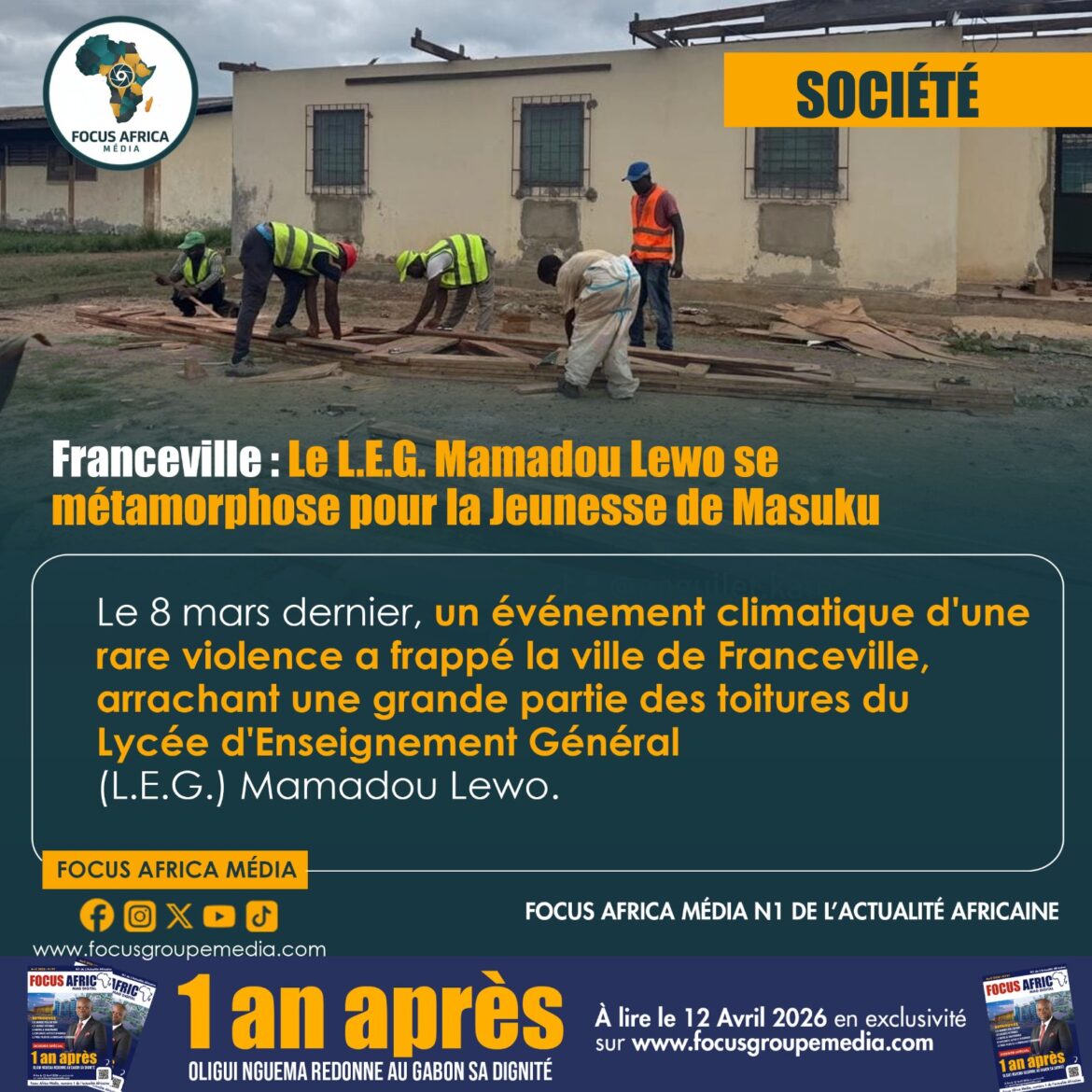 Ce chantier illustre parfaitement la volonté politique de ne laisser aucun élève sur le bord du chemin, faisant de la réhabilitation des infrastructures scolaires un pilier de la cohésion sociale dans la province du Haut-Ogooué.Sous l’impulsion du Président Brice Clotaire Oligui Nguema, la reconstruction du L.E.G. Mamadou Lewo s’affirme comme une preuve concrète d’un État à l’écoute et protecteur. En investissant massivement pour que la rentrée et le cursus des jeunes de Masuku se déroulent dans des conditions optimales, le gouvernement réitère sa promesse de placer l’éducation au sommet des priorités nationales. C’est un Gabon nouveau qui s’édifie ici, où chaque infrastructure restaurée est un gage de confiance envers l’avenir et le génie de notre jeunesse.