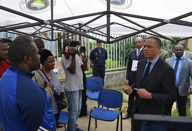 Le ministre des sports et de la culture, Franck Nguéma, sensible aux préoccupations de ces concitoyens, est descendu de son bureau pour venir à la rencontre des agents grévistes