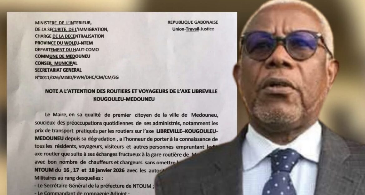 Le cri de détresse des usagers de l’axe Libreville-Kougouleu-Medouneu a trouvé un écho inattendu, mais controversé, auprès de l’édilité locale. Par une note officielle datée du 3 février 2026, le maire de Medouneu a rendu publics de nouveaux tarifs de transport homologués : 15 000 F CFA pour une place en cabine et 10 000 F CFA pour la caisse, applicables dès le 1er février. Si cette initiative est présentée comme une réponse à la dégradation de la voirie et aux préoccupations des transporteurs, elle suscite une levée de boucliers chez les observateurs qui y voient une taxation indirecte sur le dos des clients, déjà étranglés par un coût de la vie galopant.
