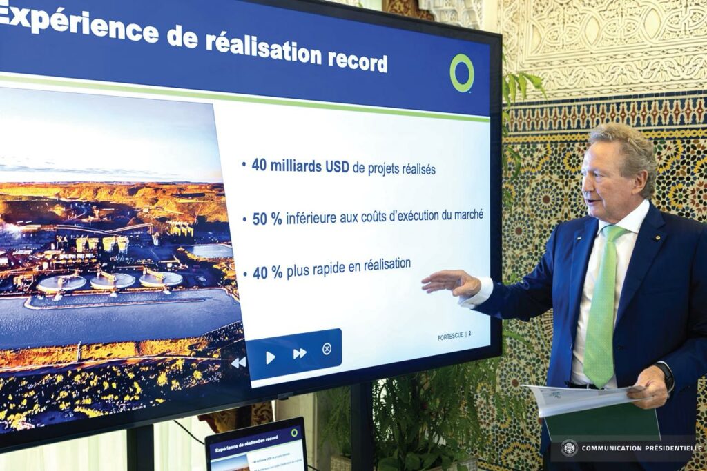 De plus,Fortescue est le Premier réseau industriel mondial qui fonctionneraexclusivement à partir d’énergies vertes.Très actif au Gabon dans le domaine minier à travers sa filiale IronIvindo, principalement sur le projet de minerai de fer de Belinga aunord-est du pays, le groupe a soumis au Président de la République. une solution intégrée pour la mine, les rails, le port et l’énergieverte.