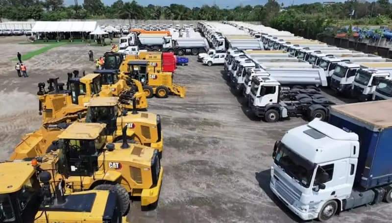 Le Gabon a acquis 13 niveleuses Caterpillar )il en reste encore 14),10 chargeurs Caterpillar (il en reste encore 5), 6 bulldozers Caterpillar (il en reste 9), 12 pelles hydrauliques Caterpillar, dont 10 pelles hydrauliques et 2 pelles Caterpillar (il n’en reste plus sur la commande qu’une seule), 9 portes-chars à 4 essieux (il en reste 5 sur la commande),53 camions-baignes (il en reste 57 sur la commande),2 camions-citaines à eau, 25 Toyota non-cruiseurs double cabine.