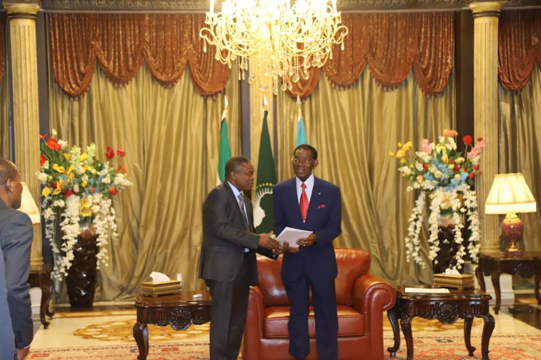 Le jeudi 29 août 2024, le Ministre des Transports, de la Marine Marchande et de la Mer du Gabon a été reçu par le Président de la République de Guinée Équatoriale, Teodoro OBIANG NGUEMA MBASOGO. Accompagné de sa délégation, composée du candidat Prosper ZO’O MINTO’O, de l’ambassadeur de Guinée Équatoriale, Sébastien NTOUTOUM, ainsi que de sa Conseillère en Communication, Marlyse NGUEMA, Dieudonné Loïc Ndinga Moudouma a mené des échanges cordiaux avec le Chef de l’État équato-guinéen.
