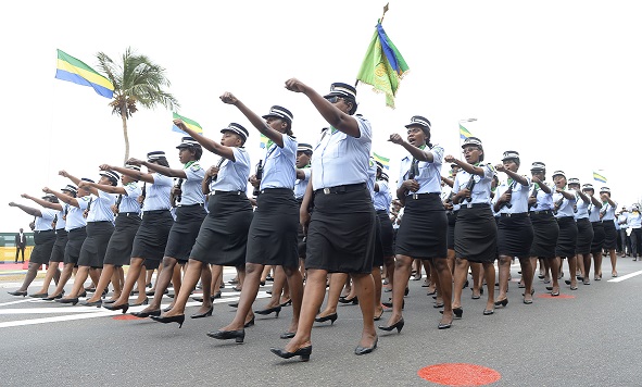Le Président de la République, Ali Bongo Ondimba, a pris part vendredi à la traditionnelle grande parade militaire commémorant le 58ème anniversaire de l’accession de notre pays à la souveraineté internationale.  Pour cette édition, placée sous le thème : « la gestion démocratique des foules », un accent particulier a été mis sur la formation des agents de défense et de sécurité, qui sont désormais imprégnés des notions de droit humain. Ceci, afin de veiller au respect des lois et règlements, à l’intégrité physique des personnes, et préserver la paix sociale par la recherche du dialogue et la maîtrise de la force illégitime. Arrivé à bord de son véhicule de commandement, le chef de l’Etat, chef suprême des armées a été accueilli par le ministre d’Etat, ministre de la Défense nationale, avant de procéder à la remise de décorations et distinctions honorifiques aux notables et aux hauts cadres de l’administration publique gabonaise. C’est en présence de plusieurs personnalités dont le Vice-président de la République, le Premier ministre, les membres du gouvernement, les représentants des corps constitués et autres hôtes de marque, que le Président de la République a assisté au passage pédestre et motorisé des différents corps des Forces de défense et de sécurité en trois grandes phases : défilé aérien et parade des troupes à pied ; passage des unités navales et défilé motorisé ; exécution de l’hymne national par l’ensemble des formations musicales desdites troupes. RAMA]]>