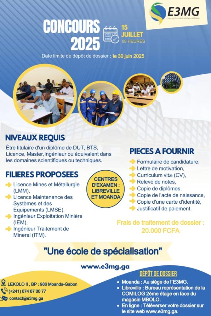 Accueil EDUCATIONGabon: Lancement du concours d’entrée à l’École des Mines et de la Métallurgie de Moanda (E3MG)