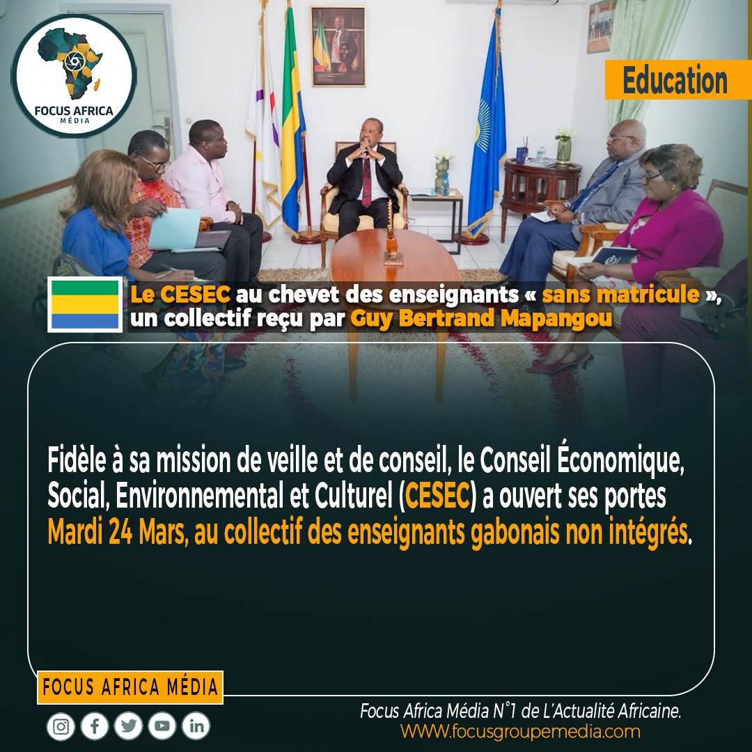 Fidèle à sa mission de veille et de conseil, le Conseil Économique, Social, Environnemental et Culturel (CESEC) a ouvert ses portes au collectif des enseignants gabonais non intégrés. Reçus en audience par le président de l’institution, Guy Bertrand Mapangou, ces professionnels de la craie sont venus exposer une réalité amère : celle d’une centaine de pédagogues exerçant sur l’ensemble du territoire sans poste budgétaire, ni reconnaissance administrative officielle, et ce malgré des années de service dévoué.Pour ces enseignants « fantômes » de l’administration, l’enjeu est vital.