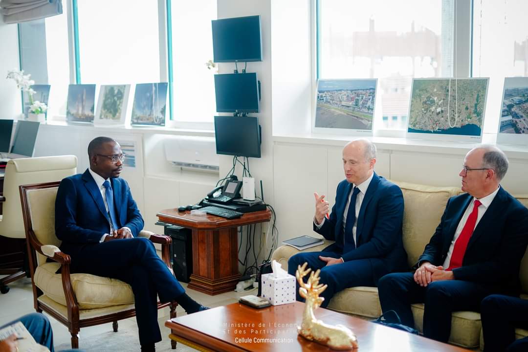 Ce mercredi 22 mai 2024, le ministre de l’Économie et des Participations, Monsieur Mays MOUISSI, a accordé une audience à une délégation composée de Monsieur Bertrand ROSE, Directeur Général de Trafigura, Monsieur Matthieu MILANDRI, Responsable financier de Trafigura et Monsieur Xavier Venereau, Responsable financier et de la Commercialisation des produits pétroliers à British Petroleum.