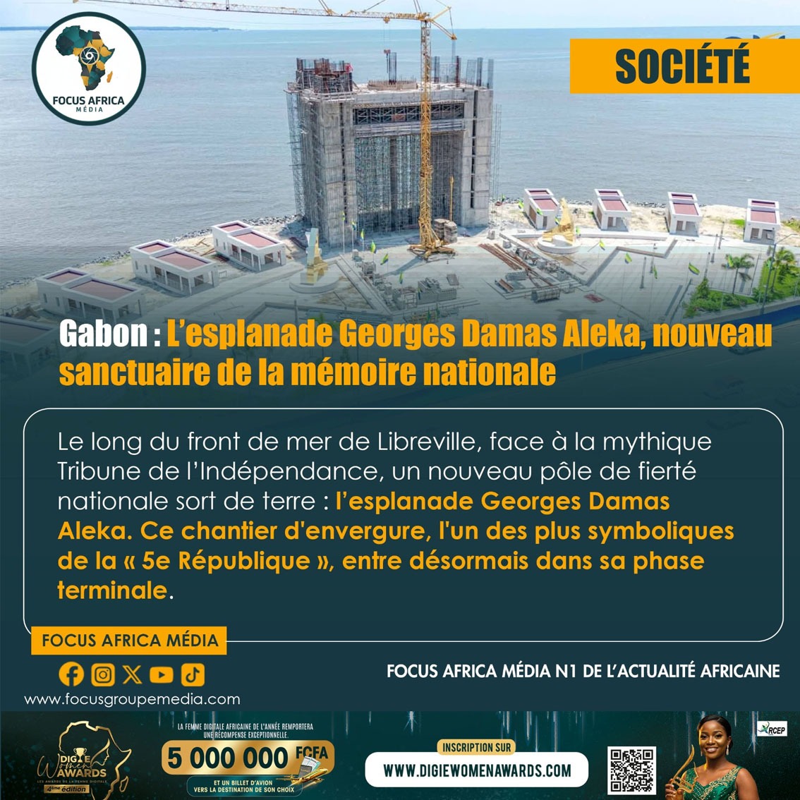 Les derniers travaux de coffrage sur les étages supérieurs marquent l’aboutissement imminent de ce géant de pierre.Fidèle à la vision du président Brice Clotaire Oligui Nguema, ce projet est également un succès pour le patriotisme économique : près de 90 % de la main-d’œuvre mobilisée est gabonaise. En confiant la construction de ce symbole aux mains des nationaux, l’État affirme sa confiance dans le génie local et renforce les compétences de ses artisans. L’esplanade Georges Damas Aleka ne sera donc pas seulement un lieu de mémoire, mais le témoignage vivant d’un Gabon capable de bâtir lui-même les monuments de sa propre grandeur.