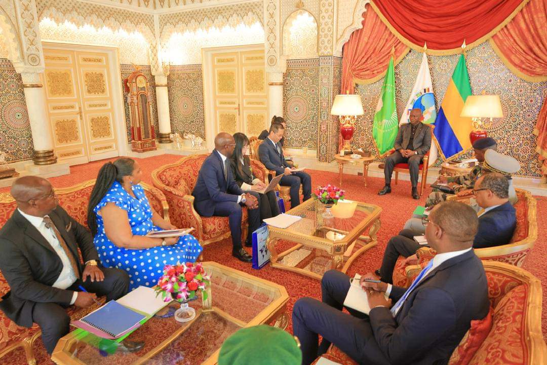 Le Président de la Transition, Président de la République, Chef de l’État, Son Excellence le Général Brice Clotaire Oligui Nguema a reçu ce jour monsieur Zhu Pengfei, Vice-Président du groupe CR20 introduit au Cabinet présidentiel par monsieur Philippe Mintoghe, Administrateur Directeur Général du Groupe 3AAA.