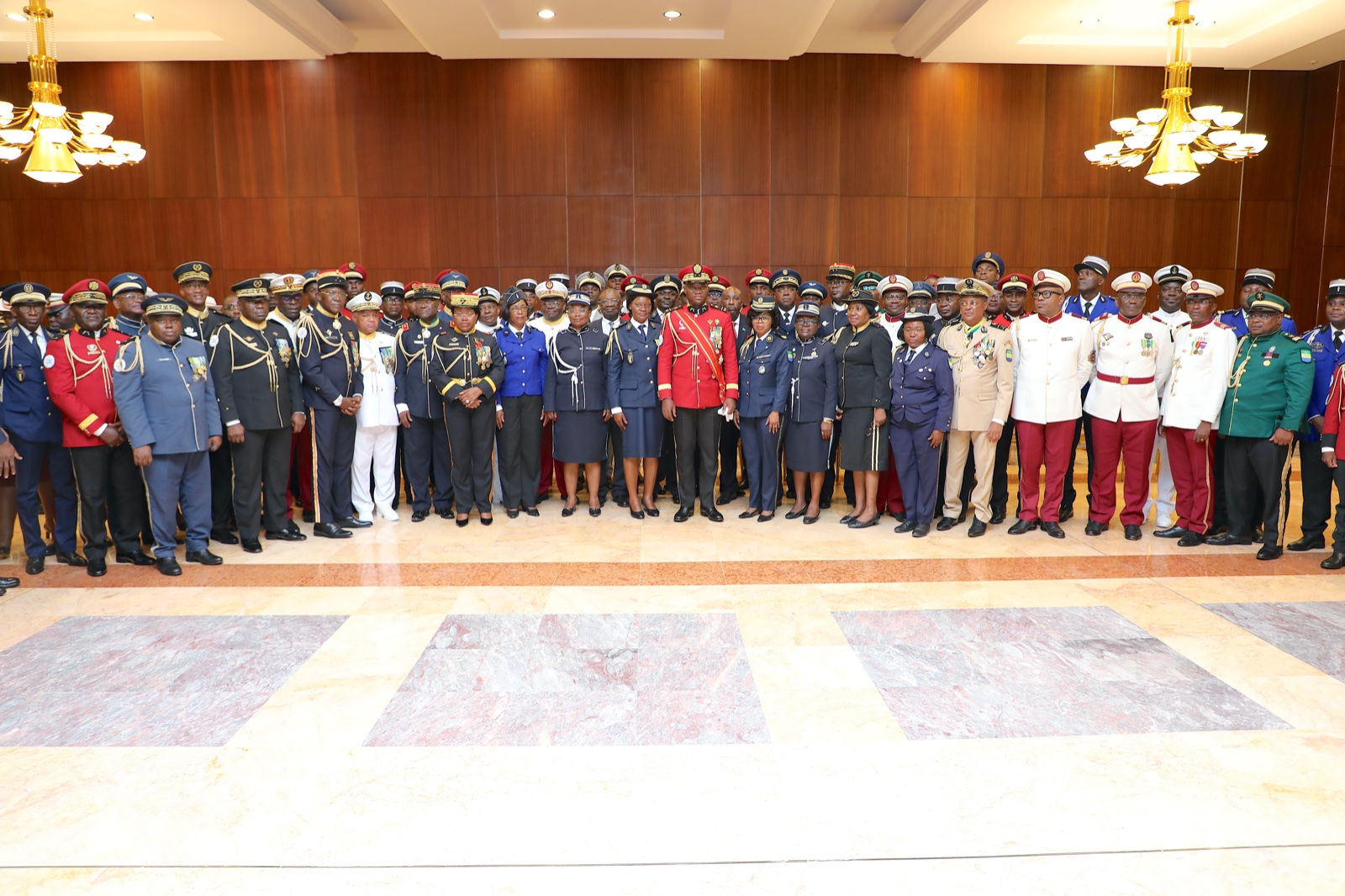 Après avoir pris acte du rapport fait par le personnel de Forces de Défense et de Sécurité, notamment les missions qui étaient les leurs durant ces assises, le Chef de l’État a exprimé son satisfecit général pour leur bonne conduite,leur implication durant près d’un mois de travaux dans leurs commissions respectives.Pour Oligui Nguema, il s’agit notamment de rendre hommage à ces agents publics qui pendant 1 mois ont assuré de façon prompte la sécurité des participants et la quiétude au niveau du Stade d’Angondjé dans la commune d’Akanda.