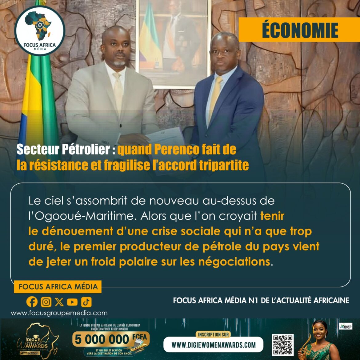 Pour les détracteurs du groupe, cette posture n’est rien d’autre qu’une stratégie visant à préserver des marges bénéficiaires au détriment des droits fondamentaux des travailleurs, ravivant ainsi des accusations de pratiques contraires à l’éthique.In fine, ce blocage pose une question de souveraineté et d’autorité de l’État. Le gouvernement gabonais peut-il tolérer qu’un opérateur, aussi puissant soit-il, s’affranchisse d’un cadre normatif accepté par ses pairs ? En tant que premier producteur national, le poids de Perenco est immense, mais son isolement actuel fragilise l’ensemble de l’édifice social du secteur pétrolier. Tant que ce géant restera en marge du compromis transmis à Hermann Immongault, la crise demeurera ouverte et l’accord paraîtra inachevé. Le conflit entre dans une phase d’usure où l’exécutif devra démontrer sa capacité à imposer une règle commune dans un secteur stratégique qui ne peut plus se permettre de vivre au rythme des humeurs d’un seul acteur.