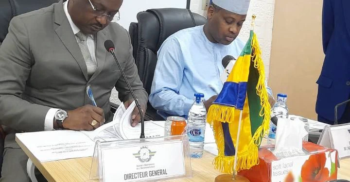 En marge de la session extraordinaire du Conseil d’Administration des Autorités Africaines et Malgaches de l’Aviation Civile (AAMAC), le Directeur Général de l’ANAC, le Général de Brigade Eric Tristan Franck MOUSSAVOU, et son homologue de l’Autorité de l’Aviation Civile du Tchad (ADAC), Sénoussi HASSANA ABDOULAYE, ont signé, le 17 avril 2024 à N’Djamena, un Arrangement technique ainsi que le Mémorandum d’Entente y afférent.