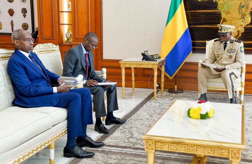 Le Général Brice Clotaire Oligui Nguema, Président de la Transition, Chef de l’État a reçu ce jour en audience, Taher Hamid Nguilin, ministre des Finances du Tchad, Envoyé Spécial, porteur d’un message de S.E le Général Mahamat Idriss Deby Itno, Président de la Transition de la République du Tchad.