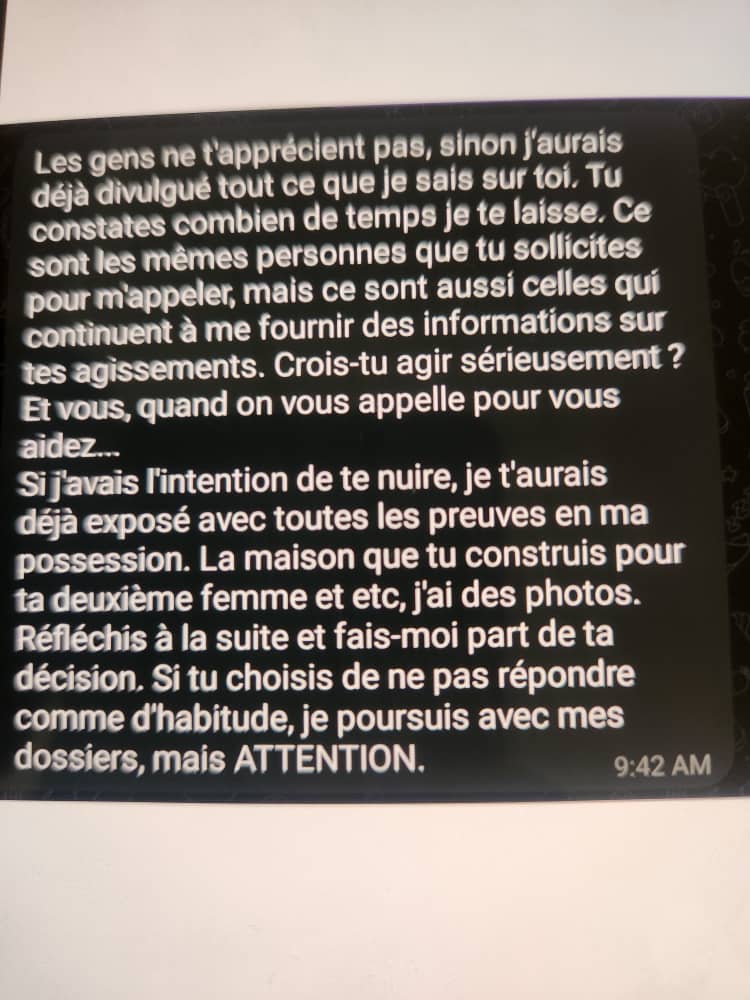 La vie en France est-elle devenue si difficile que désormais le pseudo activiste s’en remet aux menaces et aux chantages à l’endroit de ses compatriotes pour vivoter ? Le pseudo activiste s’apprêterait à passer à l’offensive dans les prochains jours après avoir été complètement ignoré par l’une de ses cibles à qui il a promis faire du »sale » si ce dernier ne le rencontrait pas ou ne lui verserait pas de l’argent.