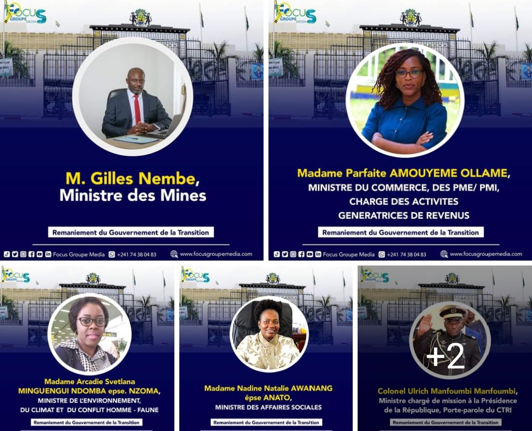 L’entrée la plus médiatisée est celle du nouveau ministre des Mines, Gilles NEMBE, qui remplace à ce poste Hervé Patrick Opiangah, homme d’affaires gabonais, sérial entrepreneur, qui aurait préféré de continuer à prospérer dans l’entrepreneuriat grâce à ses nombreuses entreprises. Entre temps, l’on enregistre également l’entrée au gouvernement du Colonel Ulrich Manfoumbi Manfoumbi, en qualité de Ministre chargé de missions à la Présidence de la République, porte-parole du CTRI.