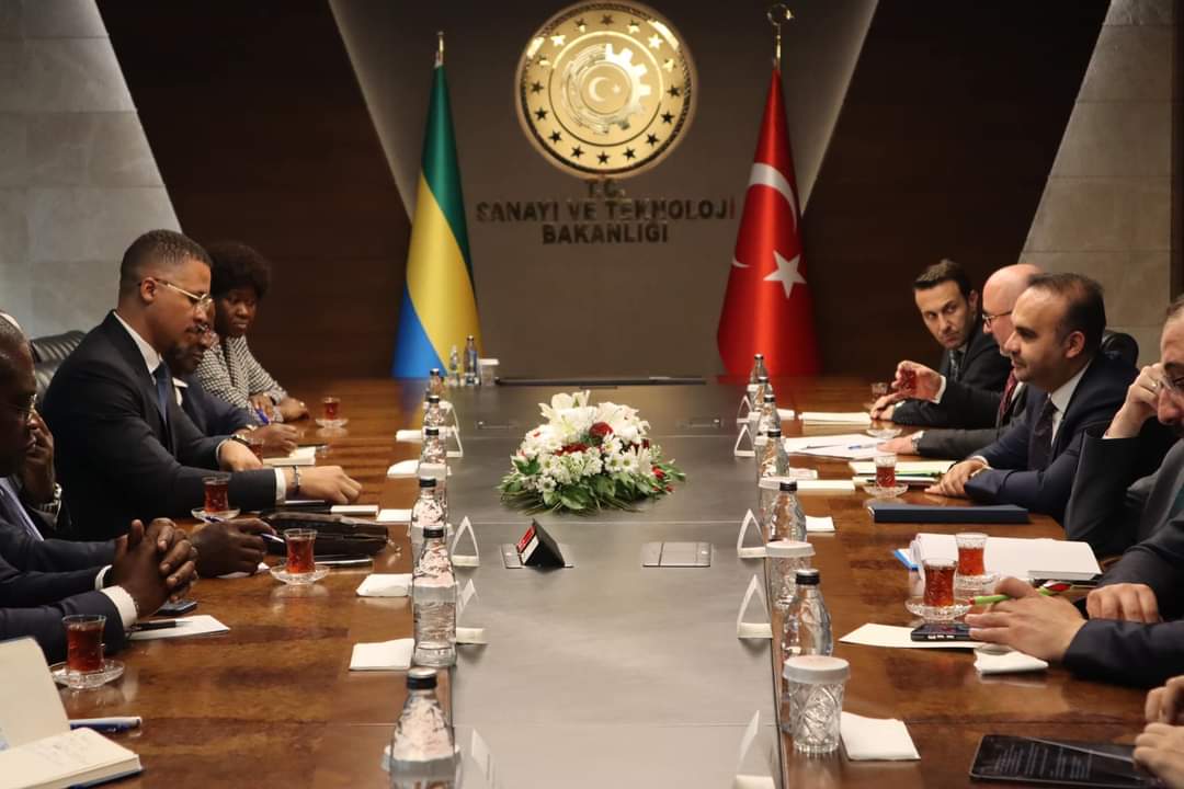 En visite de Travail à Ankara en Turquie, François Mbongo Rafemo Bourdette a rencontré son homologue M. Mehmet Fatih Kacır, Ministre Turc de L’Industrie et de la Technologie.Cette réunion s’est axée sur l’appropriation du modèle d’industrialisation de la Turquie par la partie Gabonaise .En effet, lors de son propos introductif le Ministre de l’industrie Turc a présenté le potentiel industriel du pays marqué par 362 zones industrielles multisectorielles et 104 parcs technologiques.