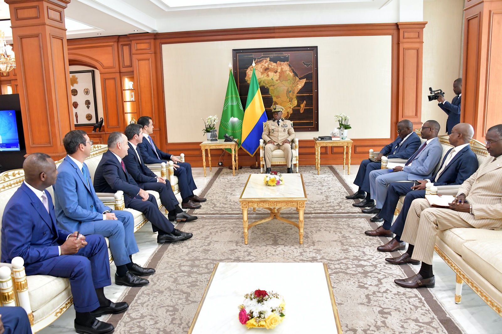 Le Président de la Transition, Président de la République, Chef d’Etat le Général Brice Clotaire Oligui Nguema a reçu ce jour en audience une délégation conduite par monsieur François Perrodo, Président Directeur Général du Groupe Perenco. Cette rencontre a été l’occasion pour le dirigeant de la firme pétrolière de présenter au Président de la Transition les différentes activités de ladite structure ainsi que ses performances réalisées pour le compte de l’année 2023.