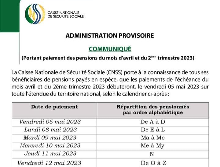 Il y a quelques mois déjà le Chef de l’État à l’occasion de son récent Discours à la nation, annonçait que les pensions de retraités allait être payées dans leur intégralité. Une promesse qui aujourd’hui se concrétise au regard de l’annonce faite par l’administration provisoire de la Caisse Nationale de Garantie Sociale ( CNSS).