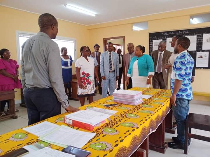 Les épreuves du Certificat d’étude primaire et élémentaire ( CEPE) ont débuté ce mardi 16 mai 2023. Raison pour laquelle Camelia Ntoutoume Leclercq , Ministre de l’Education Nationale, chargé de la Formation Civique, a visité les centres de composition de Gros Bouquet 4 et celui de Bas de Gué Gué.