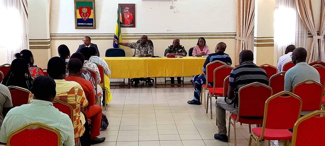 En effet, après les notables, les chefs de quartiers, les représentants des associations et de la population, le tour est revenu le vendredi 7 Juin aux délégués spéciaux de la commune de Lambaréné d’être conviés à une séance importante de travail par le Délégué Spécial en charge de la gestion de la Commune de Lambaréné, le Général d’Armée Auguste Roger BIBAYE ITANDAS.À l’ordre du jour, « le point sur les avancées en matière de nettoyage et assainissement de la ville en prélude à l’arrivée du Président de la Transition, Président de la République, Chef de l’Etat, Son Excellence le Général de brigade Brice Clotaire OLIGUI NGUEMA dans un futur proche».