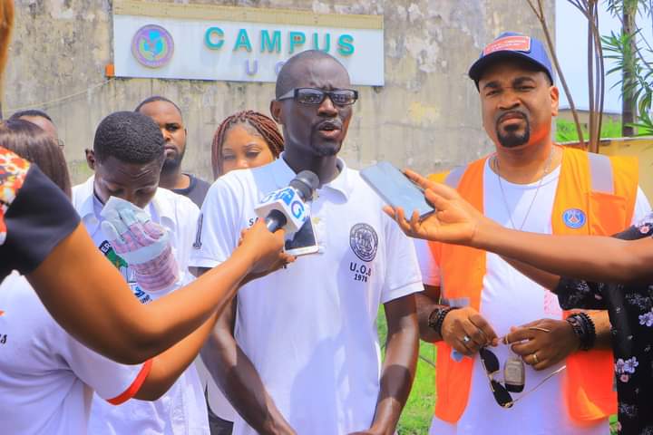 Il s’est donc s’agit d’assainir entièrement l’UOB, procéder au découpage des herbes, au Curage des caniveaux, à la remise en état des latrines ,et autres grâce à l’apport de l’ambassadeur du bonheur, propreté et de sécurité, Axel Jesson Denis Ayenoue. Des centaines d’étudiants ont donc répondu présent à cette invitation à s’impliquer grandement dans l’assainissement du temple du savoir. » L’insalubrité galopante au sein de notre institution était devenue préoccupante.